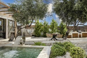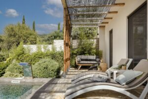 Whether you’re lounging under the shaded pergola, enjoying a romantic dinner under the olive trees, or relaxing in your pool while the sun sets over Trapezaki, Villa Vinothéa Veranda is designed to make every moment feel effortlessly luxurious.